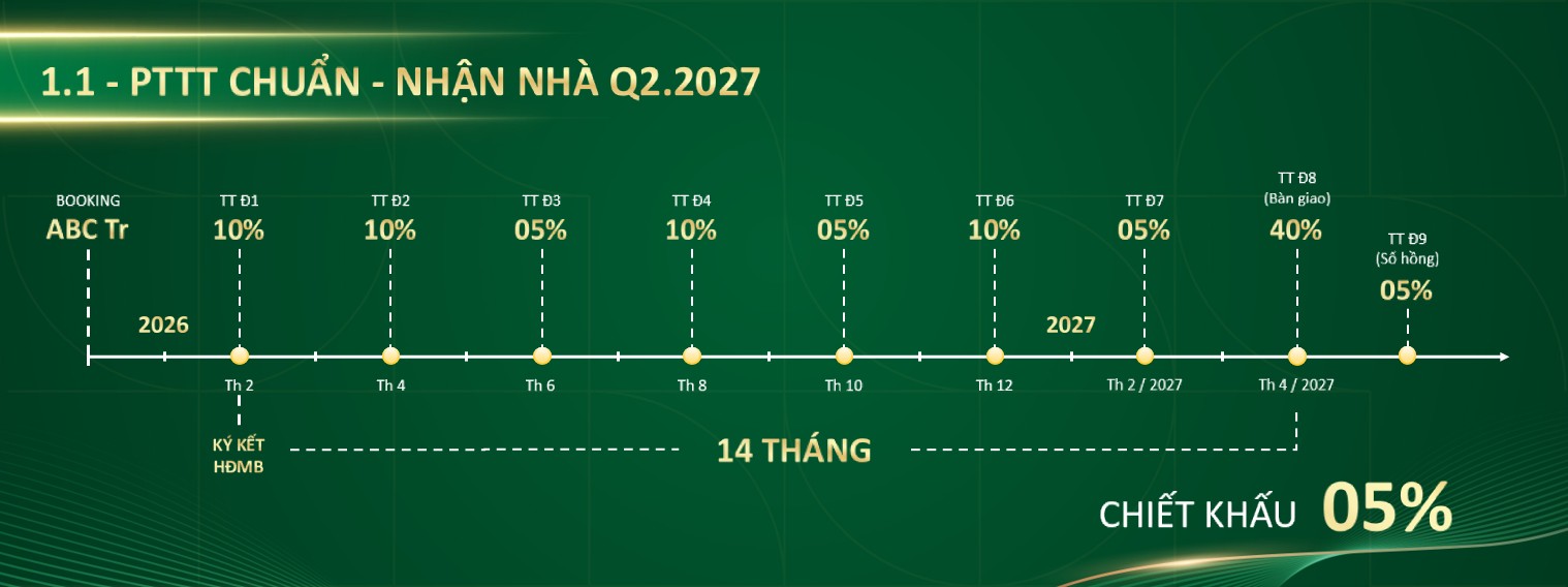 - Chiết khấu thêm 5 - 11%: tùy vào phương án thanh toán