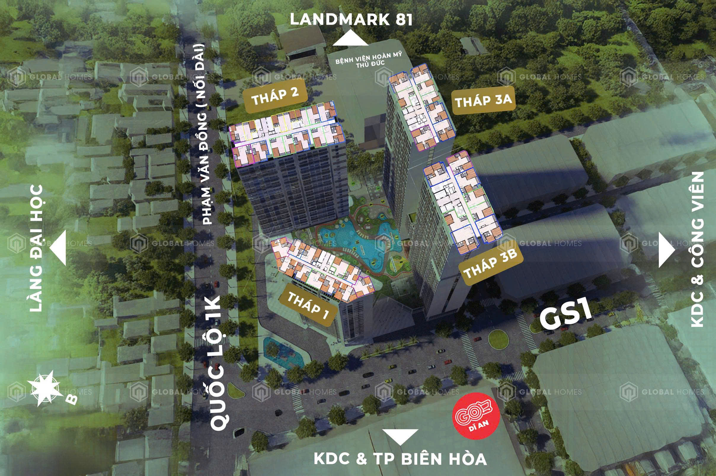 Dự án tọa lạc tại nút giao đường QL1k (Phạm Văn Đồng nối dài) – GS1, thuộc Phường Đông Hòa, Tp.HCM (Dĩ An, Bình Dương cũ)