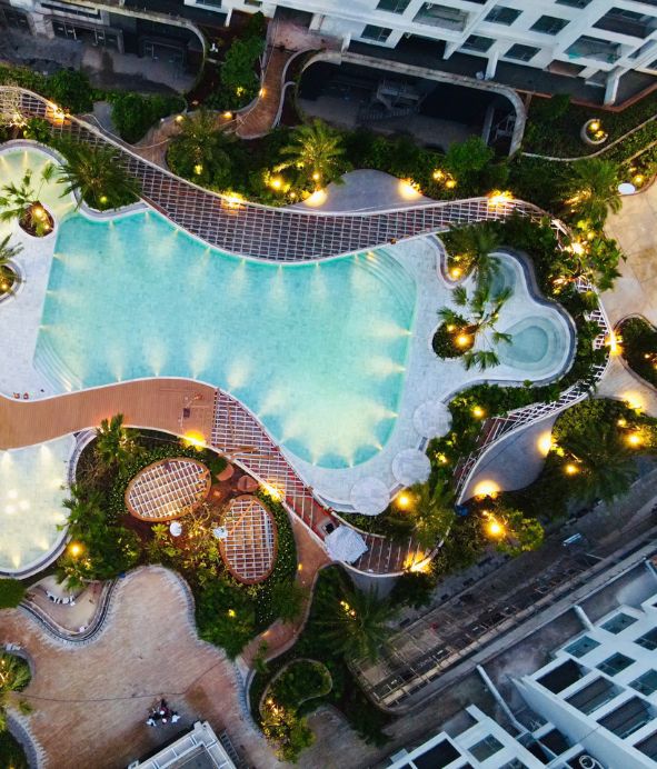 Được thiết kế như ốc đảo xanh, nơi cơ thể được thả lỏng trong làn nước an yên giữa nhịp sống năng động.