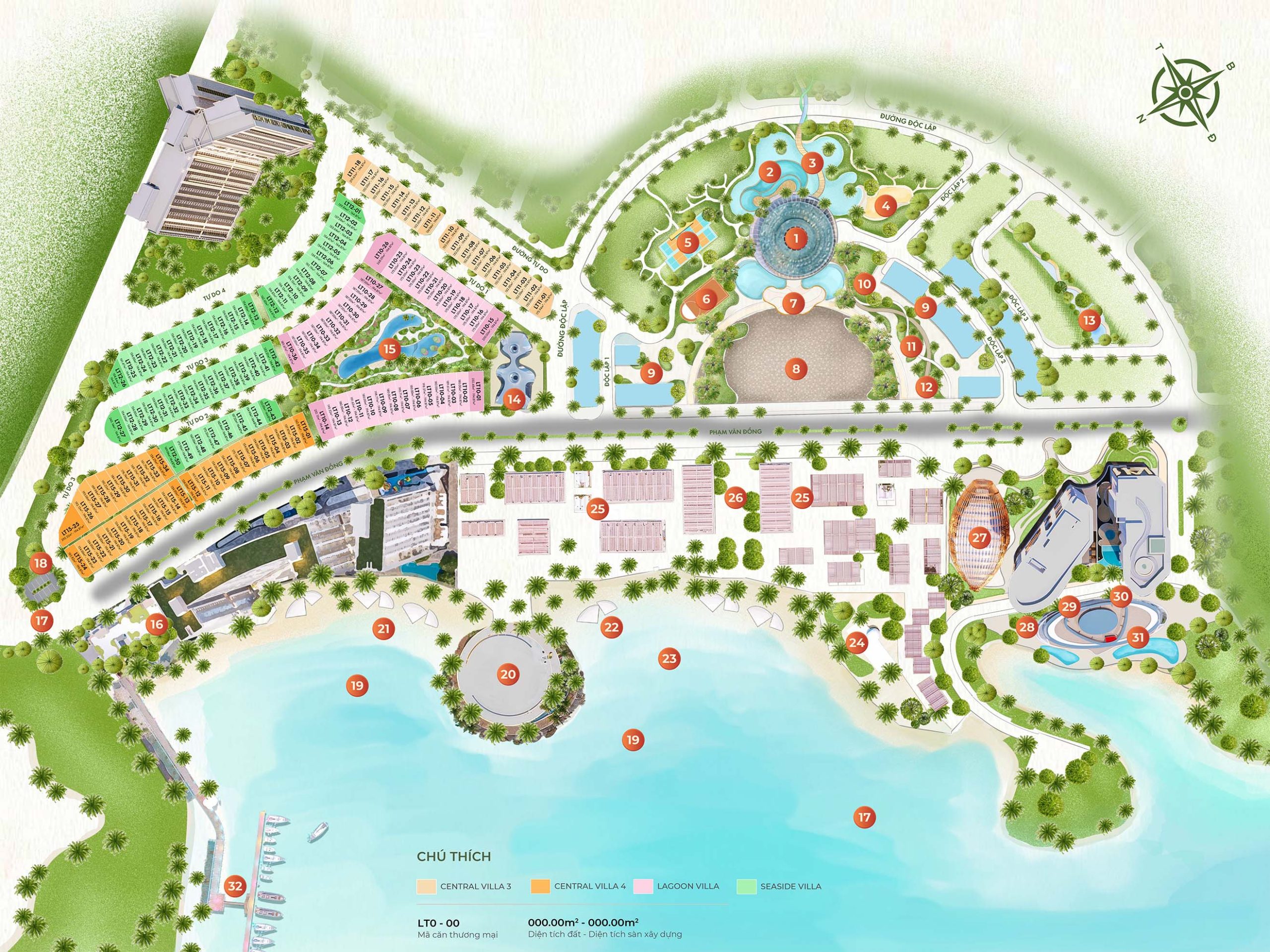 La Tiên Villa sở hữu 5 tầng cây xanh ôm trọn hiên nhà, gần 14.000m2 mặt nước len lỏi khắp không gian. Cùng chuỗi tiện ích lần đầu tiên xuất hiện tại Nha Trang: Dốc hoa, Nhà ánh sáng, Healing Center, Sport Complex…